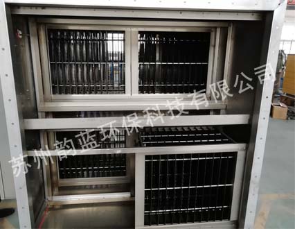 含油煙顆粒物的廢氣吸入高低壓板式末端廢氣處理設備后,其中部分較大的有霧滴、油污顆粒在均流板上由于機械碰撞、阻留而被捕集。